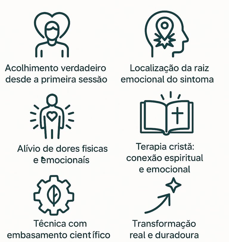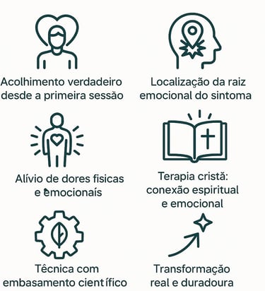 Aqui, usamos métodos como ProCURE Cicatrizes e PNL para acessar a causa real do problema e libertar seu corpo e sua mente — com acolhimento, leveza e segurança.